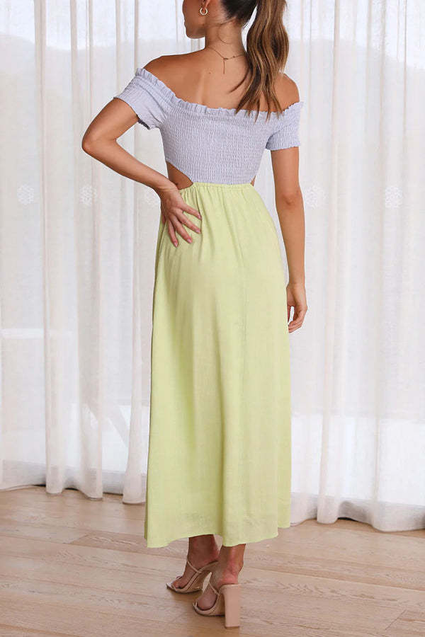 Live with Sunshine Colorblock Smocked Cutout Midi Dress