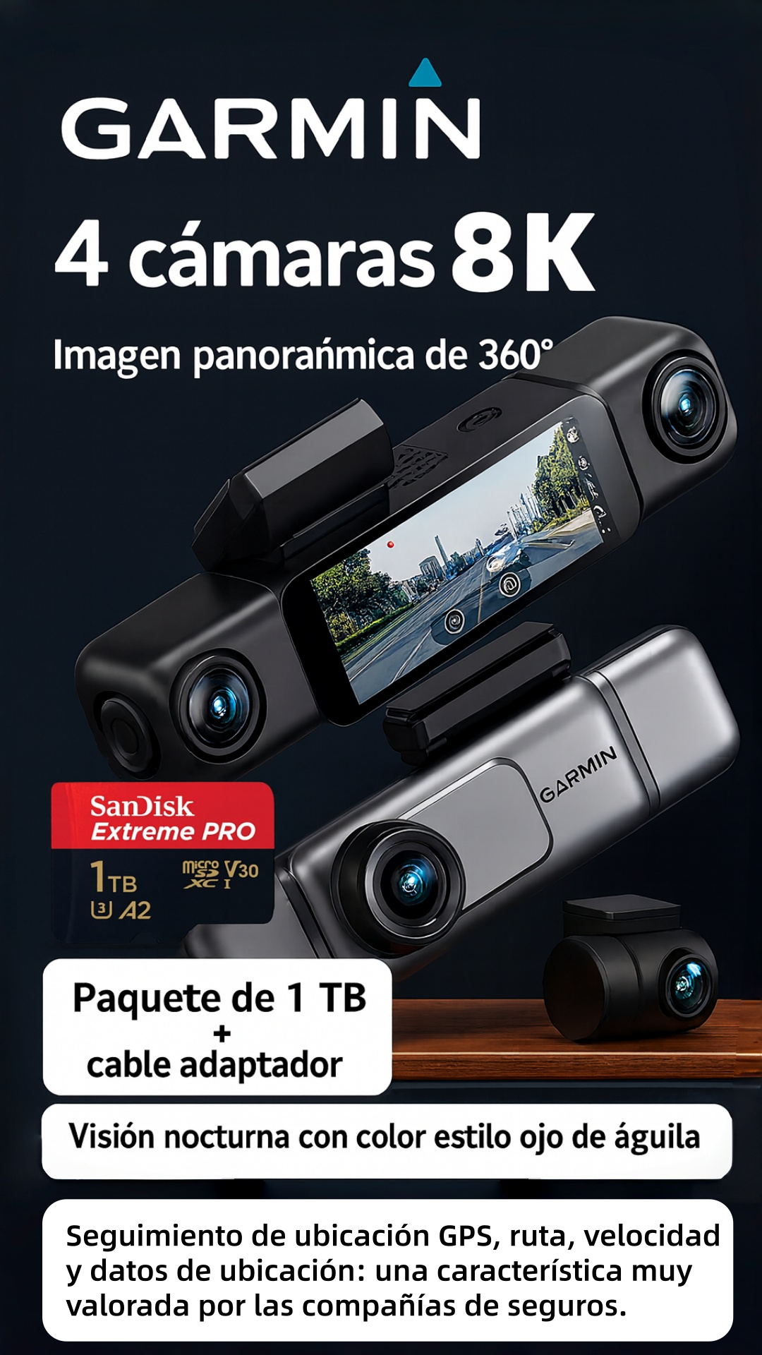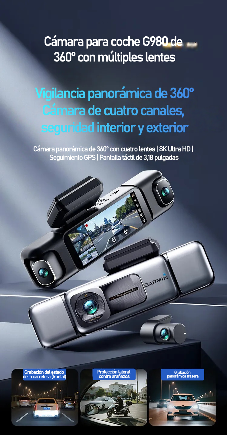 🔥🔥🔥🔥🔥🔥Cámara de tablero Garmin G980 con control por voz e inteligencia artificial | Protección panorámica de 360° con cuatro cámaras | Visión nocturna Ultra HD 8K + posicionamiento GPS preciso para proteger cada viaje de usted y su familia🔥🔥🔥🔥🔥